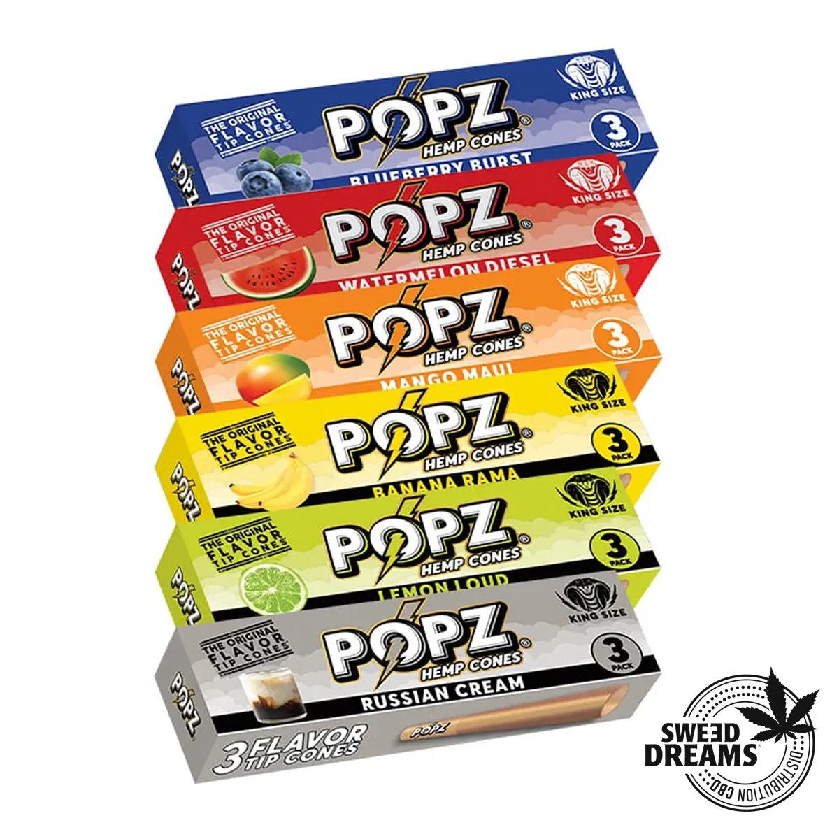 Pack de 3 conos king size POPZ, 11cm con filtro incluido, Son 100% naturales y vienen en seis opciones de sabor diferentes: